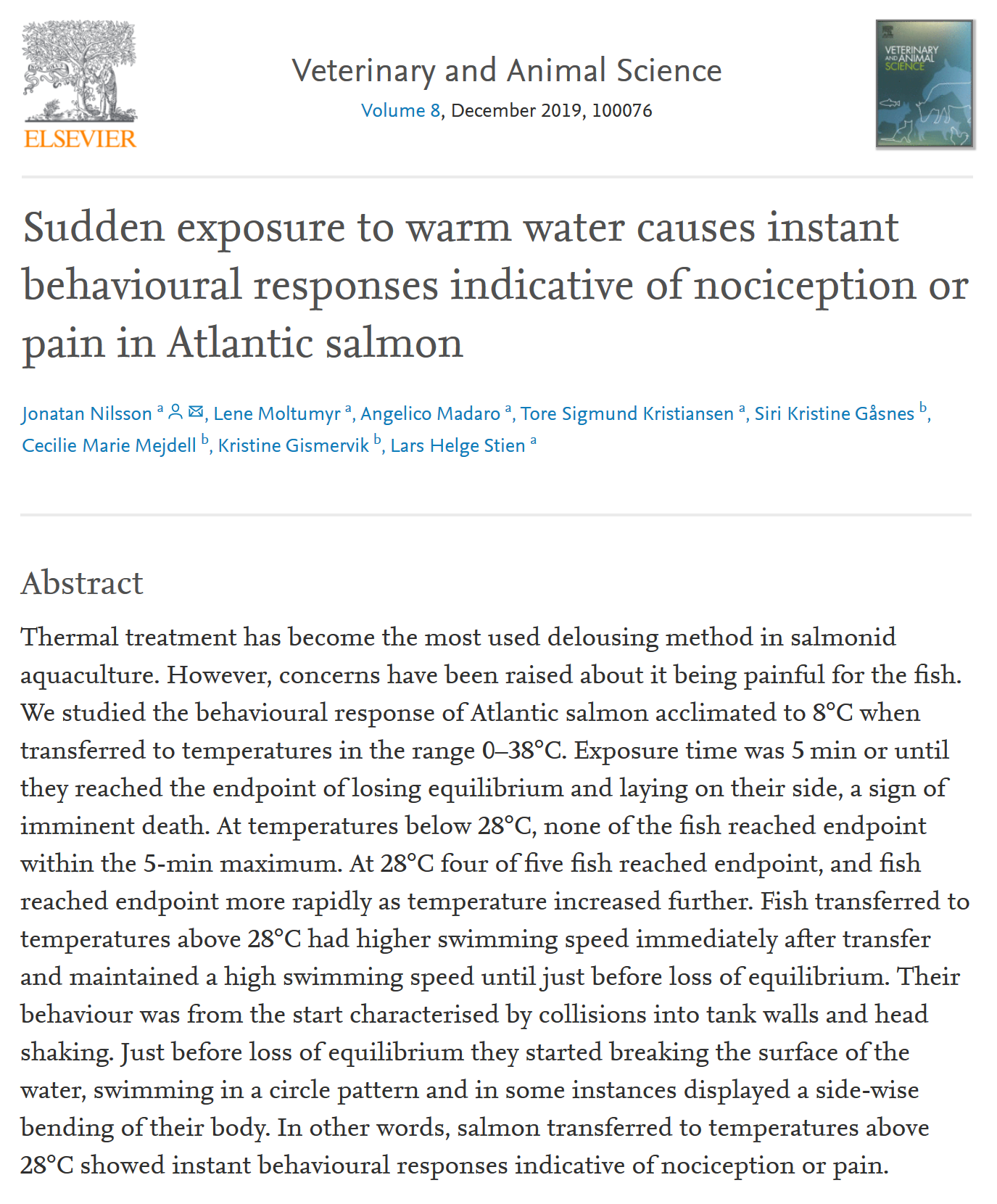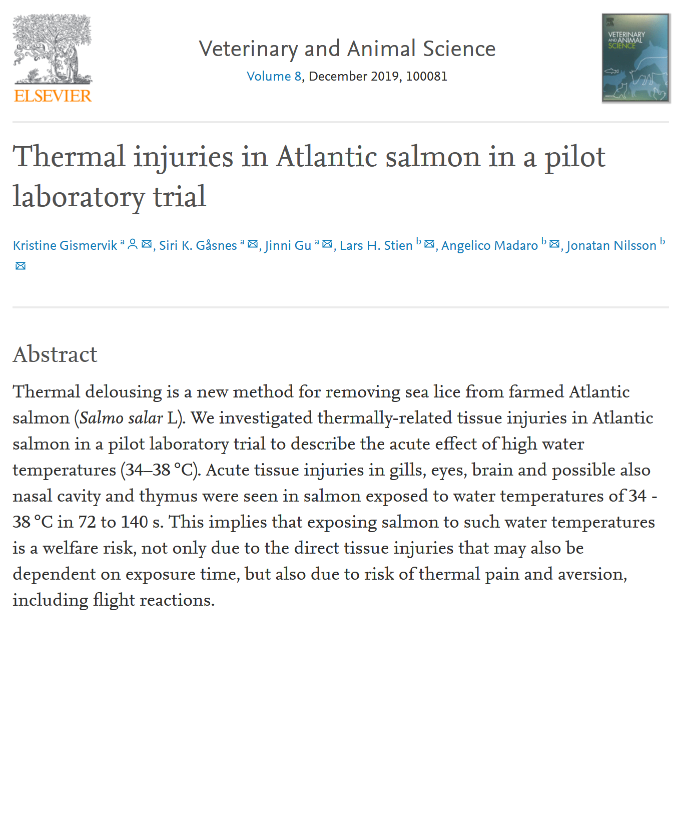*Two studies recently published in Veterinary and Animal Science have raised questions about the welfare of Atlantic salmon during thermal delousing treatments.